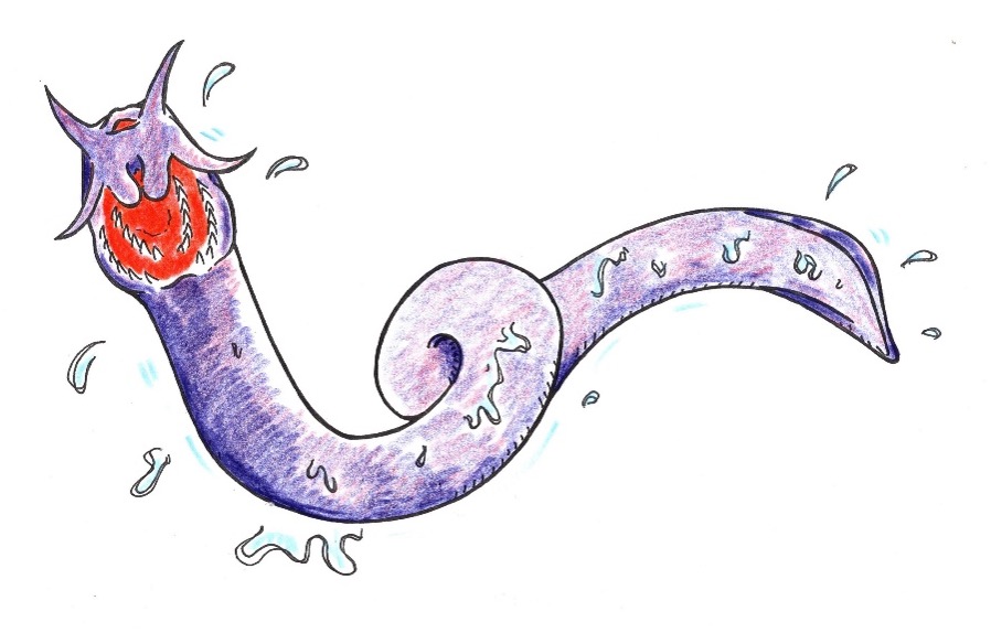サメなどの大型な捕食者に襲われた場合は、全身から強力な粘液を出します。捕食者は強力な粘液による窒息を避けるため、たまらず「ヌタウナギ」を吐き出します。これが「ヌタウナギ」の必殺技です。