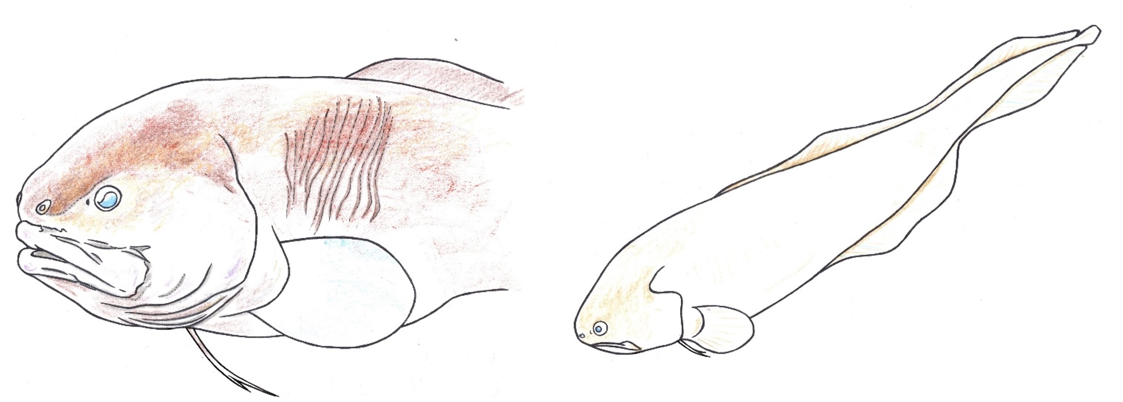 名前に「ウナギ」がつきますがウナギの仲間ではなく、にょろにょろとした見た目からついた名前です。アゴが無いため、魚類の仲間とも言い切れない原始的なセキツイ生物。